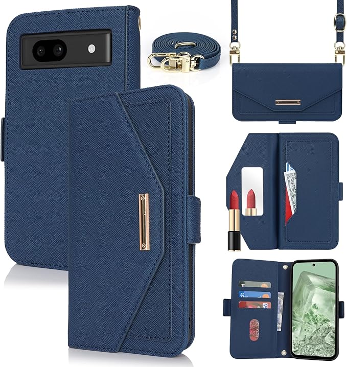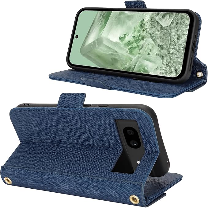 Pelanty for Pixel 8A 手帳型ケース 縄掛け肩掛け斜めがけ ショルダー 合成皮革+TPU 携帯カバー 化粧鏡付き ストラップ付き マグネット for Google pixel8a 財布型カバー ICカードポケット お札入れ小銭入れ大容量 収納ポケット スタンド機能 グーグル ピクセル8a 耐衝撃(肩縄付き-ブルー) | KAZESHOP