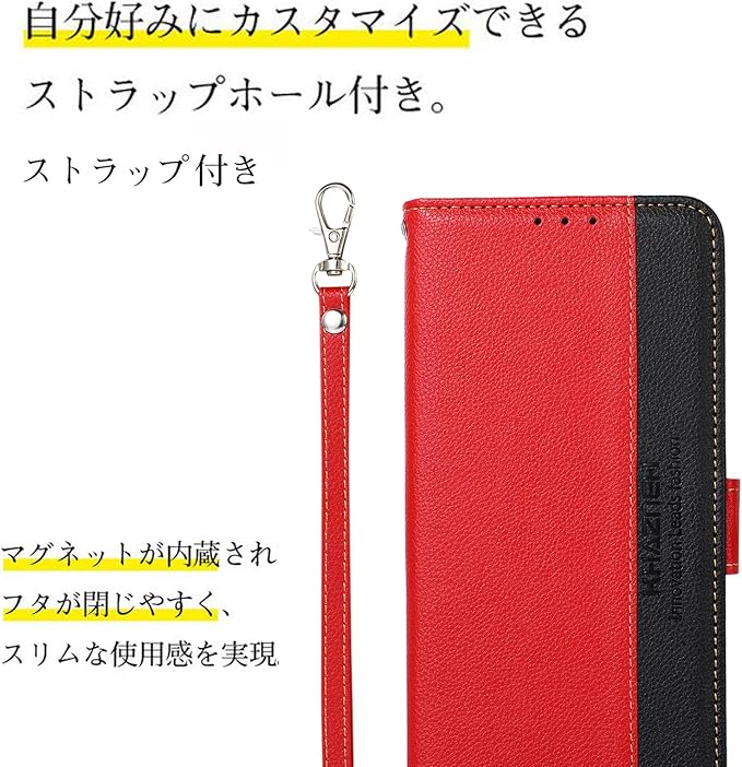 【全面保護】高品質のレザーを採用して、見た目も肌触りもいいです。留め具付きの全面保護で、傷などから本体をガードしています。伝統のプラスチック硬質素材の代わり、柔軟性に富むTPU素材を採用して、割れにくくて、衝撃から本体を守ります。上質な柔らかいPU素材を採用キズや汚れに強く、放熱性や耐衝撃が良く、落下防止に役立ちし、落としても衝撃を緩やかにして、携帯カバー 隅々までしっかりを全面保護できます。