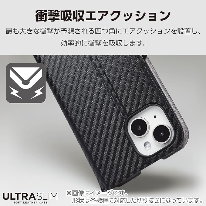 ■端末の薄さや軽さを損ねない、薄型・超軽量なウルトラスリムタイプのソフトレザーケース(手帳型)です。