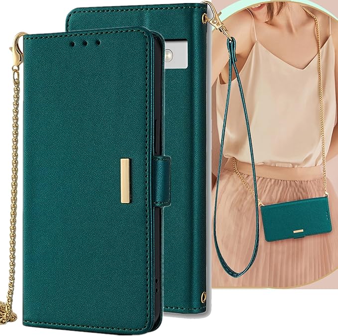 Google pixel 7A ケース 手帳型 ショルダーケース pixel7A ストラップケース docomo au softbank SIMフリー 通用 グーグル ピクセル 7A ドコモ カバー 手帳型ケース ピクセル7A 携帯ケース 耐衝撃 カードケース 手帳 case 適用 Cobeimisr ショルダー ストラップ 斜め掛け スマホケース ダーク グリーン | KAZESHOP