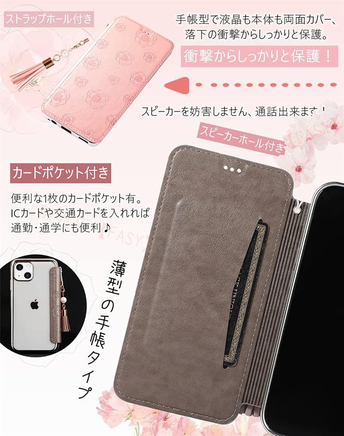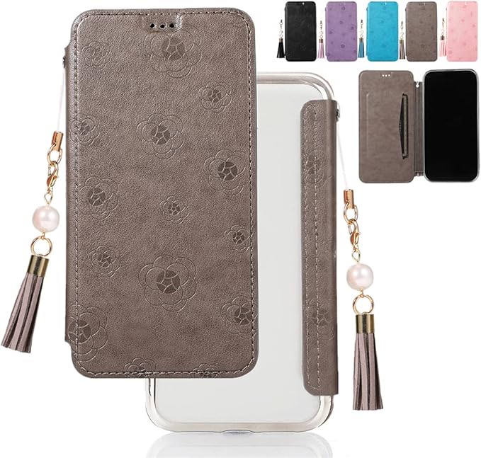 Google Pixel 7a 手帳型ケース 花柄 大人 かわいい FASY グーグル ピクセル7a 携帯カバー Pixel7A ケース メタリック カードポケット カード収納 SoftBank スマホケース 携帯ケース クリア 透明 軽量 薄型 タッセル チャーム ストラップ付き 手帳型 大人 おしゃれ かわいい 耐衝撃 革 女子 TPU マグネットなし グレー | KAZESHOP