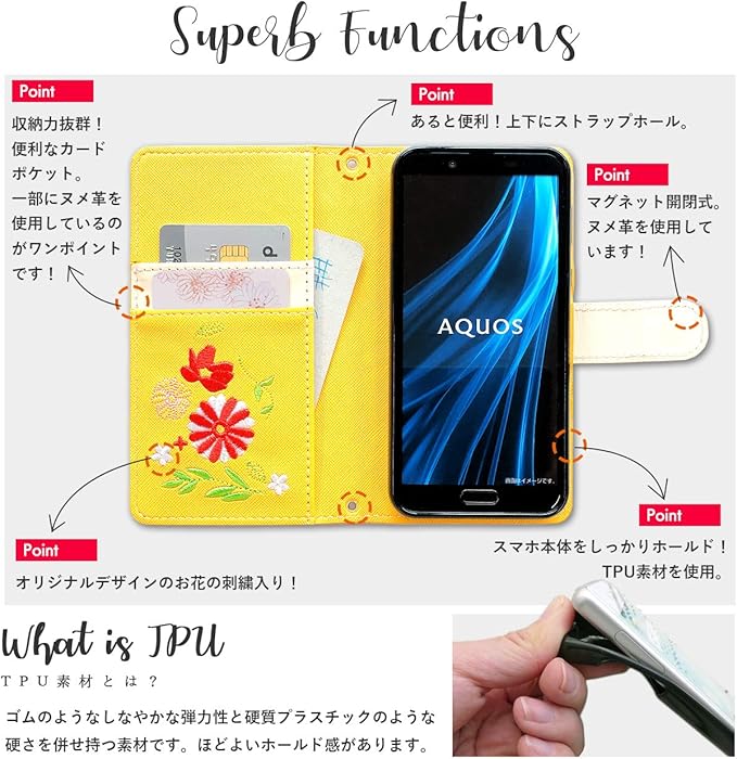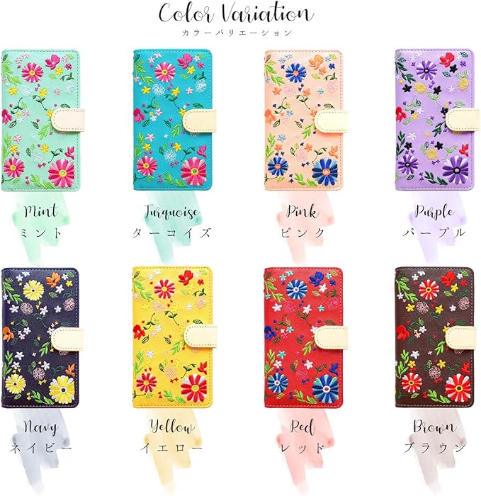 Google Pixel 8a ケース 手帳型 カバー Pixel8a Pixel8aケース Pixel8aカバー GooglePixel8aケース GooglePixel8aカバー GooglePixel8a グーグル ピクセル8a 手帳ケース 手帳型ケース スマホケース ちょいヌメ花刺繍 イエロー | KAZESHOP