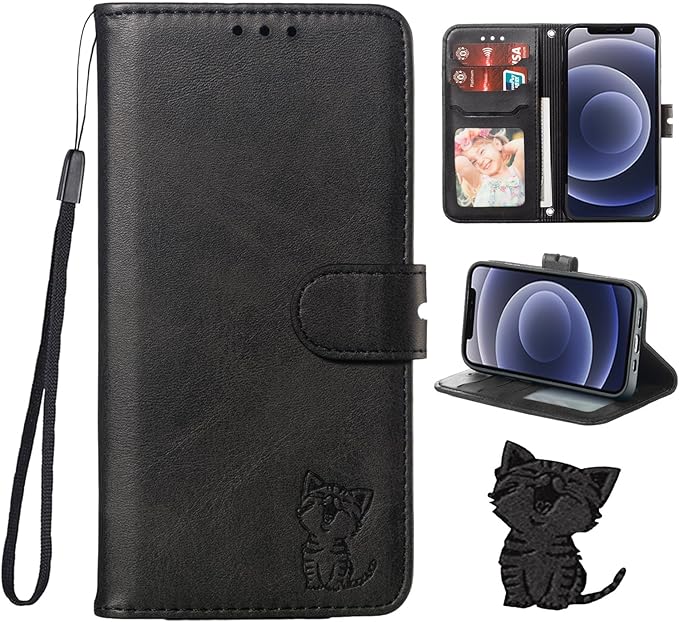 適合するGoogle pixel 9 ケース 手帳型 pixel 9 pro ケース 手帳型 グーグルピクセル9ケース pixel9 pro 手帳ケース case 笑顔猫ちゃん ストラップ付き カード入れ スタンド機能 ブラック | KAZESHOP