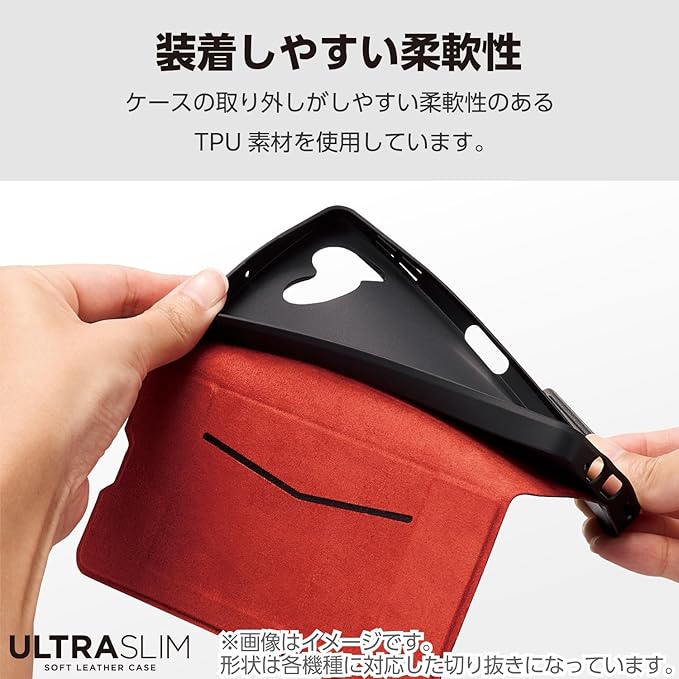 ■端末の薄さや軽さを損ねない、薄型・超軽量なウルトラスリムタイプのソフトレザーケース(手帳型)です。