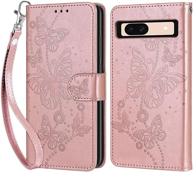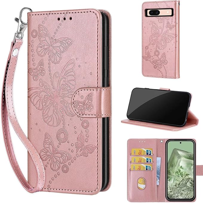 Google Pixel 8A ケース 手帳型 対応 Pixel 8A 財布型 携帯カバー Pixel8Aスマホケース 高级PUレザー 耐衝撃 耐摩擦 全面保護 ホルダーバンプパタカード収納 軽量 手触りが良い 人気上品な シンプル気質 ギフト ローズゴールドの蝶 | KAZESHOP