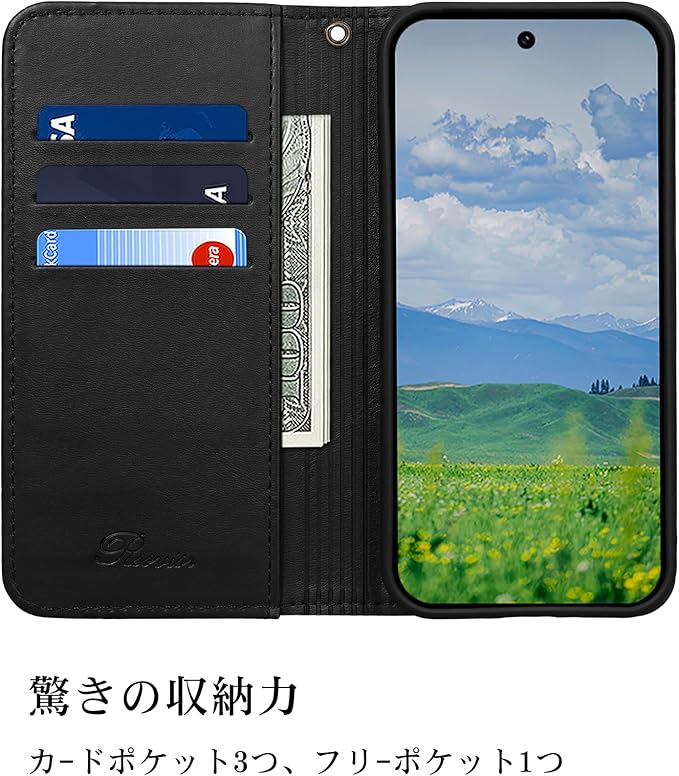 Google Pixel 9 ケース 手帳型 Pixel 9 pro 手帳型 ケース グーグル ピクセル9/ 9PRO カバー Pixel9 財布型 カード収納 PUレザー 衝撃吸収 耐摩擦 全面保護 マグネット内蔵 ベルトなし スタンド機能付き 贈り物 ブランド 人気 スマホケース Pixel 9/ 9PRO 専用手帳型ケース 6.3inch適応 W5F ブラック | KAZESHOP