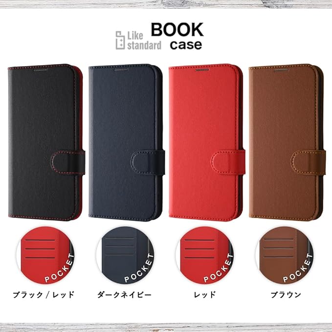 カードが入れられる大容量な収納ポケット。軽量で薄く持ち運びしやすい。動画視聴などに便利なスタンド機能付き。衝撃に強く、使いやすい。便利な機能を豊富にそなえた手帳型ケースの決定版。