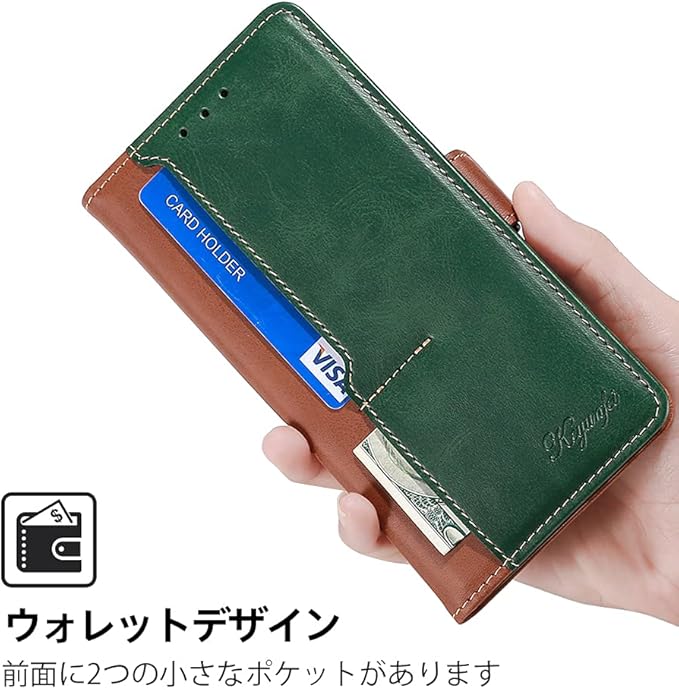 For Google Pixel 5A 5G と互換性がある ケース 手帳型 マグネット式スタンド機能 カード収納 軽量 落下防止 衝撃吸収 全面保護 財布型 折り畳み式 横置き機能 携帯カバー Google Pixel 5A 5G と互換性がある スマホケース (レトログリーン) | KAZESHOP