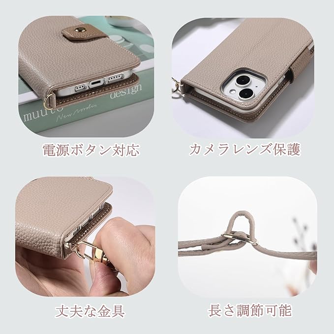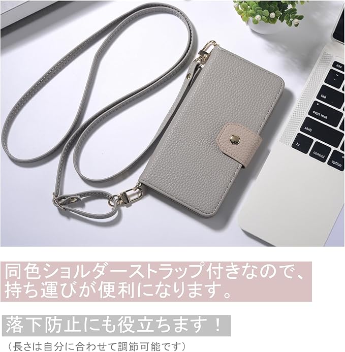 ショルダーストラップ付き:同色クロスボディチェー付きなので、持ち運びが便利になります。落下防止にも役立ちます。ショルダーストラップの長さは自分に合わせて調節可能です。斜め掛け、肩掛け、首にかけるなど、多様な使用方法を現実できます。