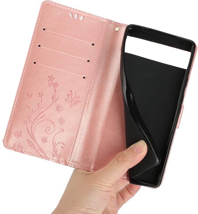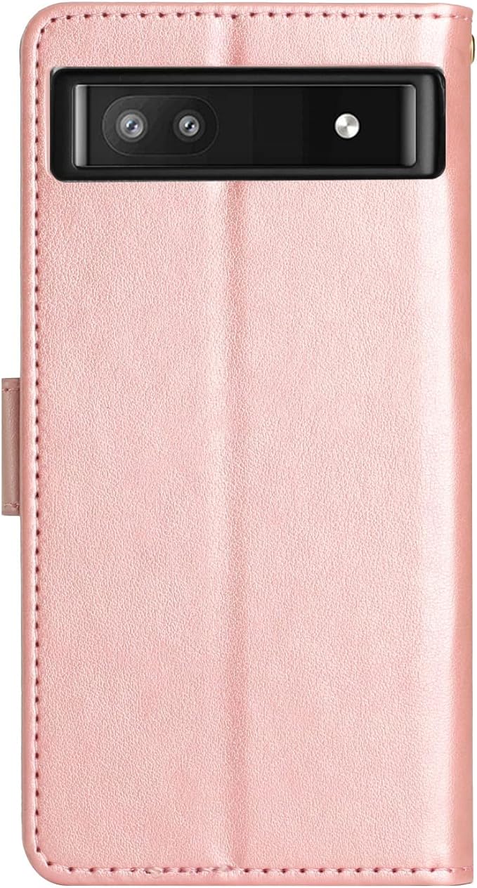 Google Pixel 7a 用 ケース 手帳型 花柄 カード 収納 おしゃれ かわいい お花 蝶々 デザイン きれい 女性 優雅 純色 カバー ストラップ 付き 横開き マグネット 耐衝撃 スマホケース グーグル ピクセル 7a 手帳ケース PU レザー 携帯カバー (ローズゴールド) | KAZESHOP