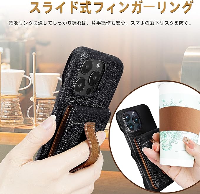 【PUリング付き】快適な片手操作が可能です。スタントとして横置きも可能、ビデオを見るのは簡単です。リングクリップはグリップ力を高め、携帯電話を落としたり壊したりする可能性を減らします。指を通すだけで安定感抜群のベルトはスタンド機能にも。