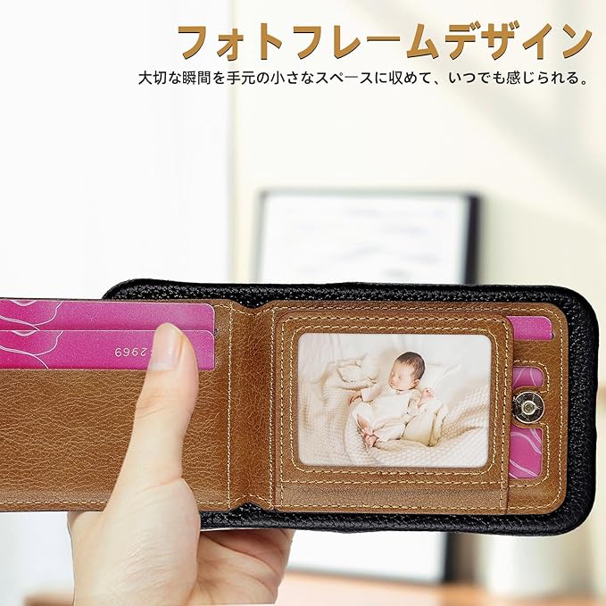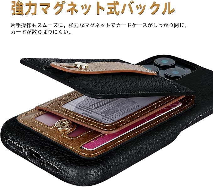 【カード収納&ピタッと閉めるスナップ式】カード収納ポケットが 5つあり、カード、名刺、定期券、免許証や写真などを入れ出来ます、収納した物が落とす心配もいらないです!マグネット式の縦型開口財布型デザインのケースは何時でもしっかり閉められる、シンプルで便利なだけでなく、コンパクトで美しいです。