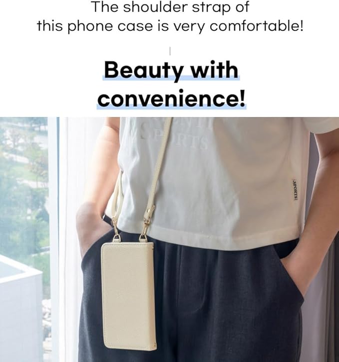 【長さ調整可能なストラップ付き】スマホケースと同じ色のショルダーストラップで、お好みの長さに調整して首や肩からかけられて両手を自由に!お出かけも楽々!
