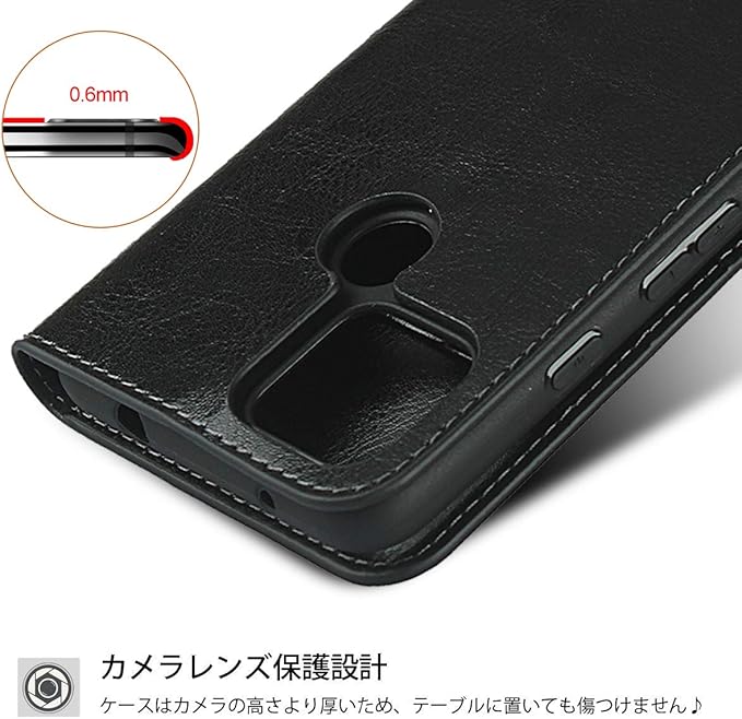【機能性⑤】:レンズ保護、本体のカメラをしっかり保護するため、カメラ部の突起より、2mmぐらい厚い段差を設置しておくデザインもあります。 ご注意:本体や磁気カードに影響をさせないため、本製品にはマグネットを採用していません、その代わりにフタの重さを適当に増加し、フラフラになりません。