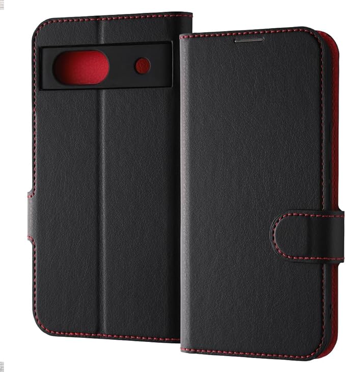 デジタルアルキミスト グーグルピクセル Google Pixel 8a ケース 手帳型 薄型 軽量 カード収納 マグネットフリップ スタンド機能 シンプル マグネット ブラック/レッド | KAZESHOP