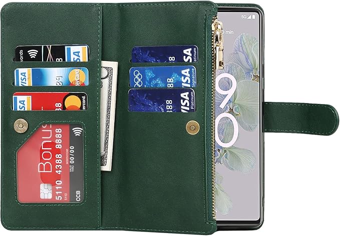Eastwave for Google Pixel 7 Pro ケース for Pixel7 Pro 縄掛けケース 手帳型 Pixel 7pro 財布型 ICカード コインポケット ストラップ付き カード 収納 小銭入れ ファスナーポケット付き PUレザー 6色 グリーン | KAZESHOP