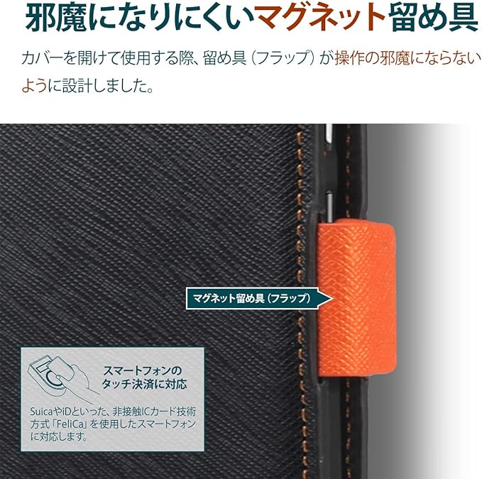 【Corallo】 Pixel 5a 5G 対応 手帳型 ケース ストラップ 付き スマホケース マグネット 式 ベルト 薄型 スリム スマホ 手帳型ケース カード 収納 スタンド 付 手帳 サフィアーノ レザー カバー 携帯ケース [ Google Pixel5a グーグル ピクセル 5a5G ピクセル5a 対応 ] NU ブラック オレンジ | KAZESHOP