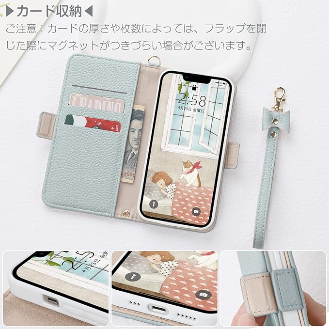 ▶【上質なオリジナルデザイン】おしゃれ手帳型カバー、はは高品質のレザーを採用しており+優しい裏面(柔軟なTPUカバー)。デザインコロケーション蝶々結びストラップ、ファッションのセンスを強調、シンプルのデザインですが、高級感が溢れ。超軽い、超薄い、肌のような手触り。落下防止に役立ちし、手帳型ケースでもかさばらず、女性へのプレゼント、彼女へのプレゼント、誕生日プレゼント、敬老のプレゼント、カップル スタイル、友人スタイル、家族スタイル、異なる色のケース手帳型 、スマホと全体にぴったりした一致感で。