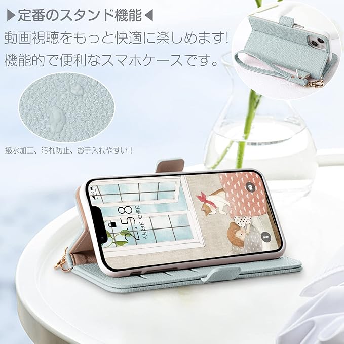 ▶【手帳型ケースの性能抜群】横置きスタンド機能が付いて、好きな角度で動画鑑賞や読書などを楽しめます。内側には三つのカード入れと一つのフリーポケットがつき、1〜2枚のカードを挿入することをお提案します。量が多すぎると、電話ケースが完全に閉じない場合があります、手帳型ケースです。定期券やカードの収納に優れています。