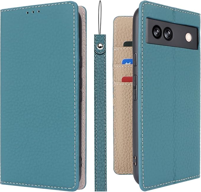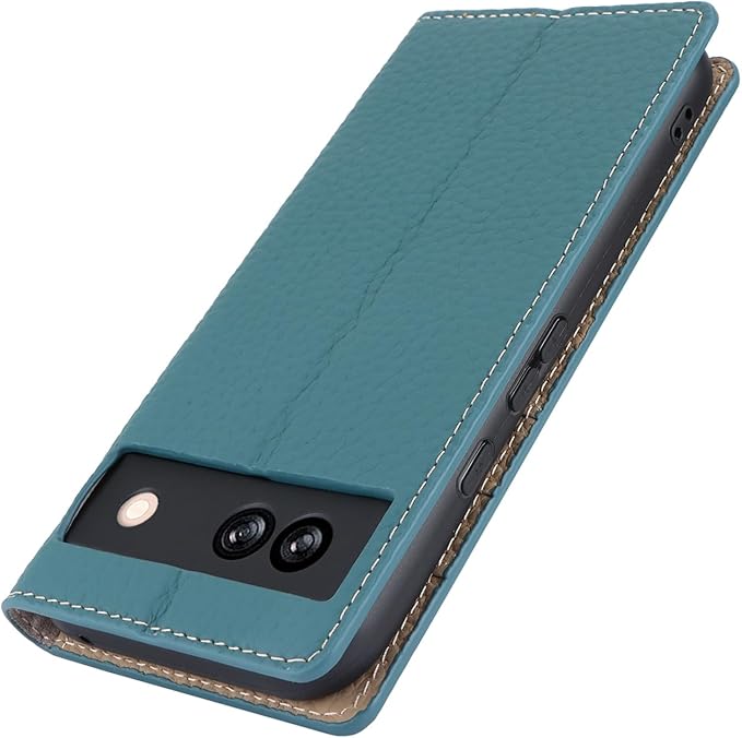 Eastwave for Pixel 8A ケース 本革 牛革 for google pixel8A ケース 手帳型 Pixel 8A カバー Case 手帳 本革 柔らかい 本皮 スプラットホール付き スプラット同梱 内蔵マグネット - ライトブルー | KAZESHOP