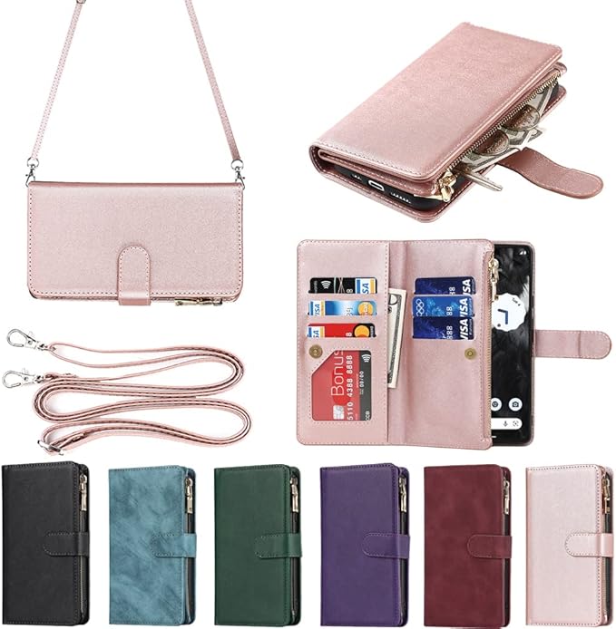 Eastwave for Google Pixel 7A ケース for pixel 7a google 縄掛けケース Pixle7A 手帳型 財布型 ICカード コインポケット ストラップ付き カード 収納 小銭入れ ファスナーポケット付き PUレザー 6色ピンク | KAZESHOP