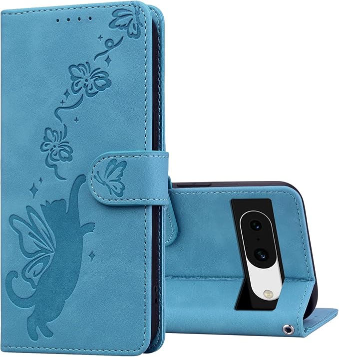 ケース Google Pixel 8A 手帳型 Pixel 8A 手帳 ケース 耐衝撃 テクスチャ マグネット開閉式 便利 軽量 薄型 カード収納 スタンド機能 おしゃれ スマホケース 人気 耐衝撃 全面保護 携帯カバー 蝶猫エンボスパターン電話ケース 財布型カバー pixel 8a(紺碧) | KAZESHOP