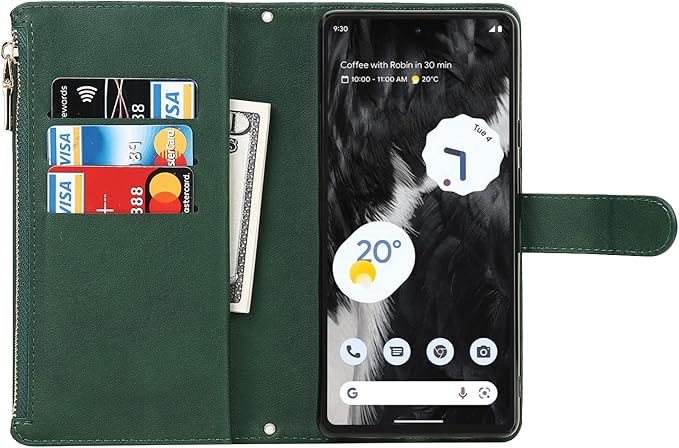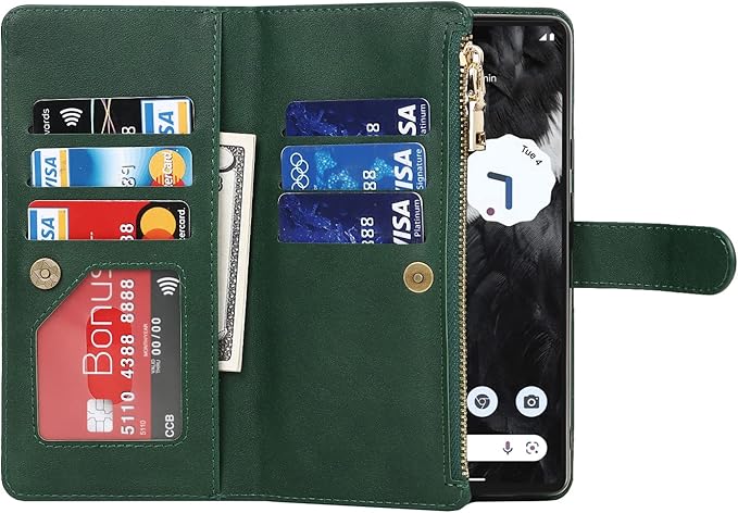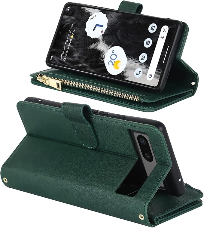 Eastwave for Google Pixel 7A ケース for pixel 7a google 縄掛けケース Pixle7A 手帳型 財布型 ICカード コインポケット ストラップ付き カード 収納 小銭入れ ファスナーポケット付き PUレザー 6色グリーン | KAZESHOP