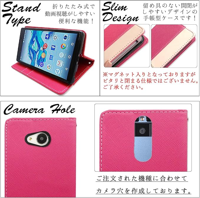 材質:PUレザー *厚めの生地を使用しています。手帳型ケースはスマホ本体より大きめの作りになっております。
