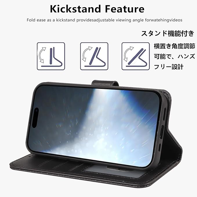 【フリースタンド機能で両手解放】:専用折り目がスマホを横向きに傾けて設置でき、動画視聴やオンライン会議をハンズフリーで快適に。両手が自由になり、実用性と利便性を両立。