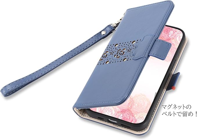 Google Pixel 7A 携帯カバー 手帳型 おしゃれ 透かし彫りの花と胡蝶柄 個性的なデザイン オリジナル スマホケース Google Pixel 7A 手帳型 ストラップ サイドマグネット開閉 カード収納付き 軽量 キラキラ 綺麗 財布型携帯カバー Google Pixel 7a ケース 手帳型 かっこいい スタンド機能 多機能 落下防止 男女通用 濃青色と花 | KAZESHOP