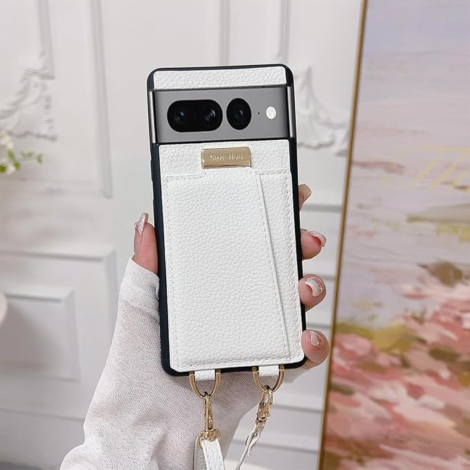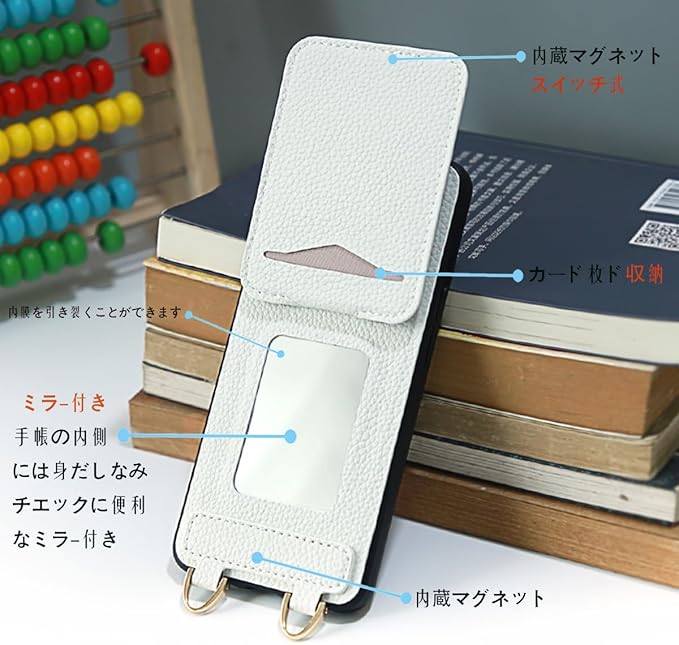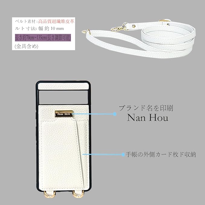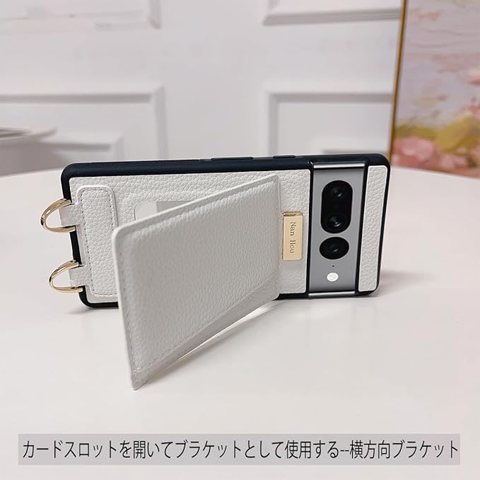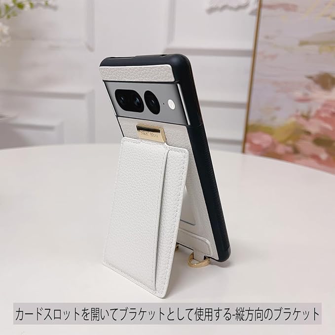 Google Pixel 7A ケース 手帳型 高質PU ファッション手帳型 斜めショルダーストラップ付き(長さ調整可能)耐衝撃 保護 Google 7a カバー 内蔵 自吸式開閉 マグネット 背面鏡付き 人気 携帯カバー 女性 上品 カードポケット スタンド機能 リストバンド グーグルピクセル7a ケース - しろい | KAZESHOP