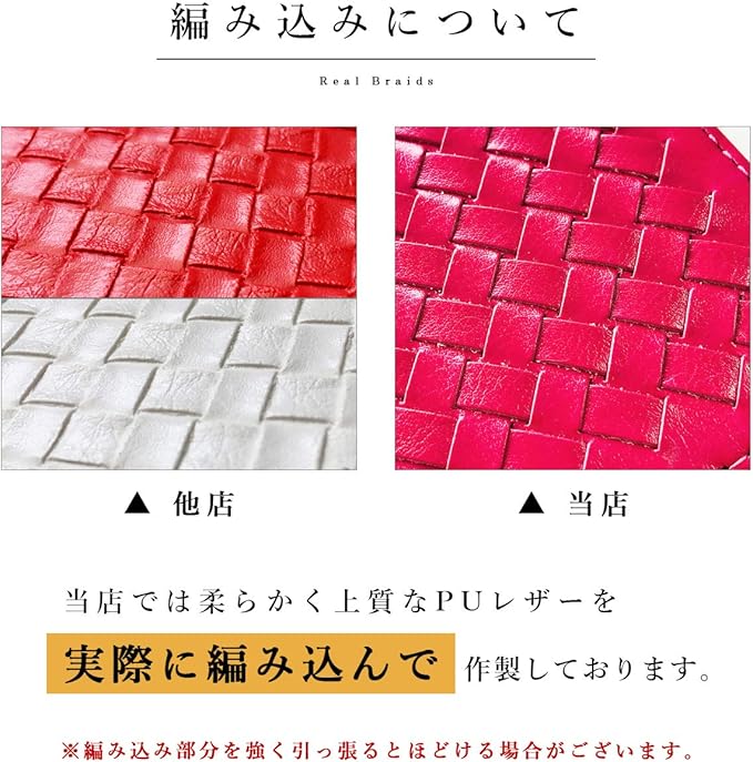 1本1本編込み形成された編み込みが大人の雰囲気漂わせる手帳型ケースです。