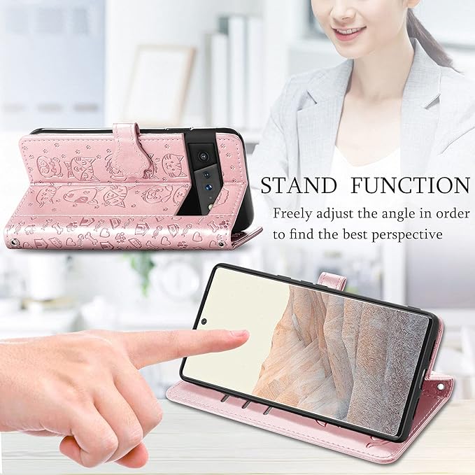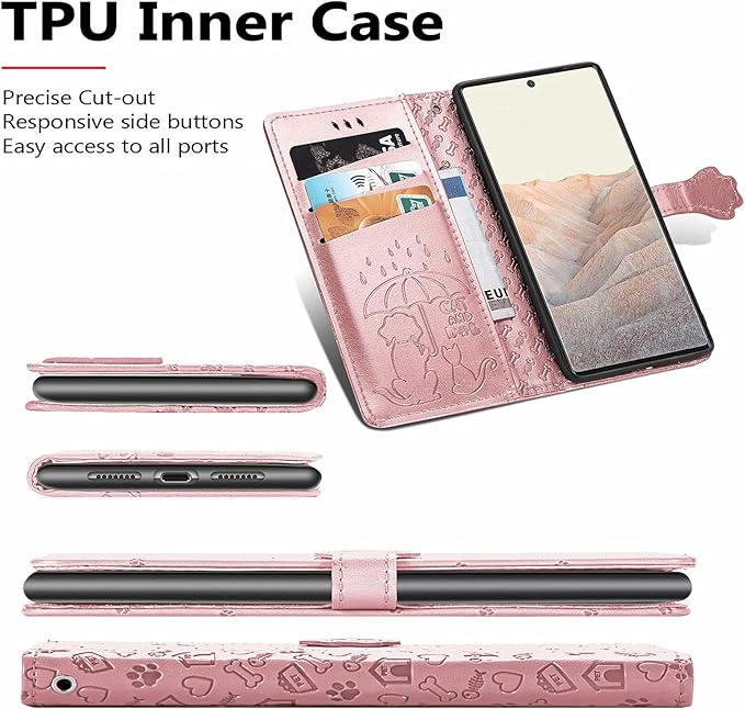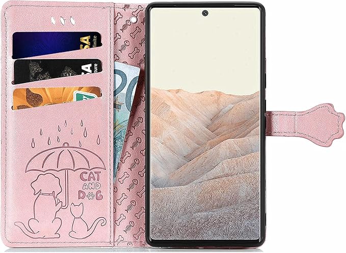 Google Pixel 7a 用 ケース 手帳型 おしゃれ 可愛い アニマル 猫 ストラップ付き マグネット式 カード収納 小銭入れ スタンド機能 グーグル ピクセル 7a かわいい ネコ 犬 手帳 カバー スマホケース (ローズゴールド) | KAZESHOP
