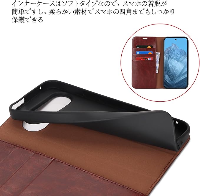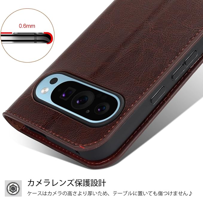 Google Pixel 9 Pro XL ケース 手帳型 マグネット無し 耐衝撃 カードケース Google用 pixel9proXL docomo au SIMフリー softbank 全対応 グーグル ピクセル9プロXL カバー ピクセル9proXL スマホケース case 適用 iCoverCase マグネットなし スタンド機能 光沢加工 牛革 レザー 財布型 カード入れ ダークブラウン | KAZESHOP