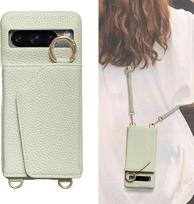 グーグルピクセル8a ケース ショルダー カード 収納 for google pixel 8a 用 ミラー 付 ピクセル8a スマホケース 背面 手帳型 PUレザー 薄型 シンプル 韓国 おしゃれ 全面保護 耐衝撃 スタンド 機能 ストラップ 付き 肩掛け 斜め掛 首掛け ピーグリーン | KAZESHOP