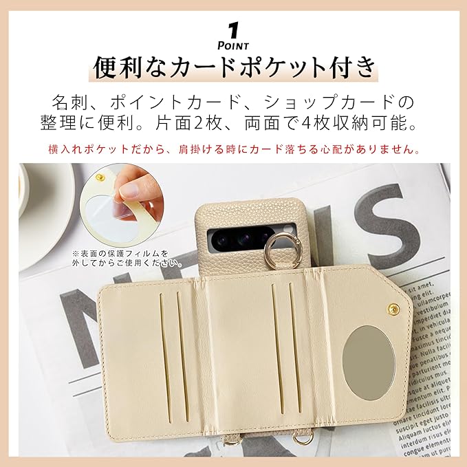 カード入れ・ショルダーストラップ付きの スマホケースです、スマホケース ピクセル8a、グーグルピクセル8aケース。グーグル ピクセル8a ケース。なんといってもショルダーストラップ付き、落下の心配や紛失の心配もありません。まるで本革のような上質なPUレザーでおしゃれを楽しむ大人女子にピッタリなアイテム。もちろんケースは衝撃吸収設計、衝撃からスマートフォン本体を保護します。内側はマイクロファイバーで本体を傷つけにくい起毛素材となっています。触り心地が良くの背面への子擦り傷を防げます。長さ自由自在調整、ショルダーストラップ付き、肩掛けしたまま操作可能。スタンド機能付き、ポケット部分を立てるとスタンドに!動画視聴などとっても便利。