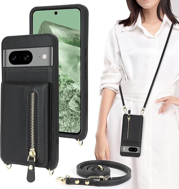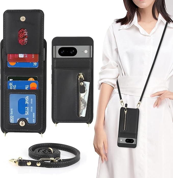 Google Pixel 8 ケース ショルダー ストラップ付き ショルダーケース 背面フリップ 上下開 手帳型 Google用 pixel8 au SIMフリー softbank 全対応 グーグル ピクセル8 カバー pixel8 スマホケース case 適用 iCoverCase カード収納 縦置き 横置き スタンド 肩がけ 首掛け 斜め掛け 携帯カバー ブラック | KAZESHOP