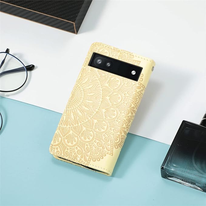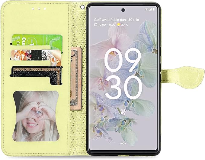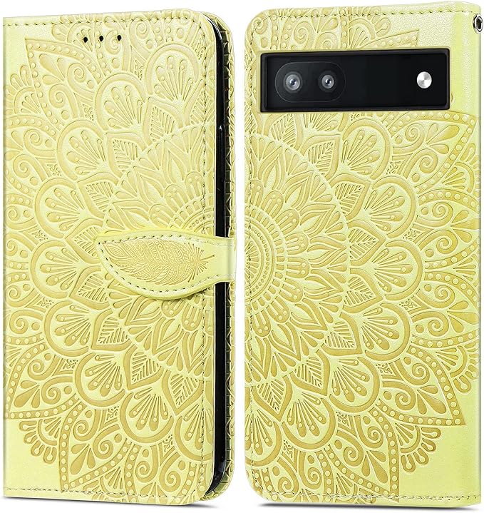 Google Pixel 6a 手帳型ケース 可愛い 女性 レディース グーグル ピクセル 6A スマホカバー 自由 夢の翼 PU革 縄掛け 人気 韓国 au softbank SIMフリー pixel6a 携帯カバー スキミング防止 ピクセル6a スマホケース スタンド可 カード収納 木の葉デコ マグネット Google 通用カバー (Pixel 6a, イエロー) | KAZESHOP