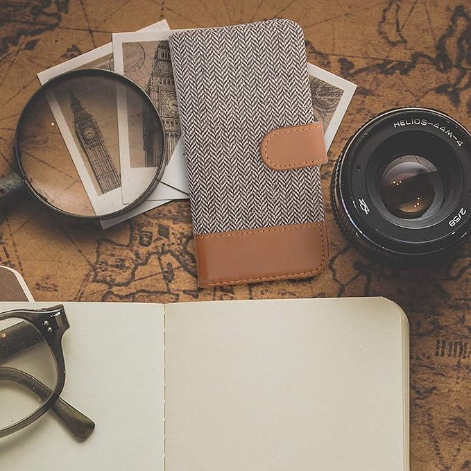 クールなプロテクション: 手帳型スマホカバーは、スマートフォンを保護して汚れや傷、衝撃から守ります。リネン風の生地と合皮レザーのコラボレーションで、あなたのスマホをスタイリッシュにプロテクト。