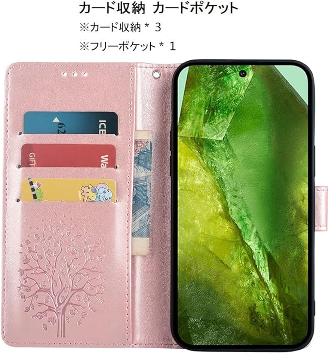 Google Pixel 8a ケース 手帳型 3枚 カード収納 グーグルピクセル8a 財布型 カバー SUGOIDAN 携帯ケース カードポケット付き カード レザー スタンド機能 ストラップ付き マグネット内蔵 耐衝撃 全面保護(ピンク) | KAZESHOP