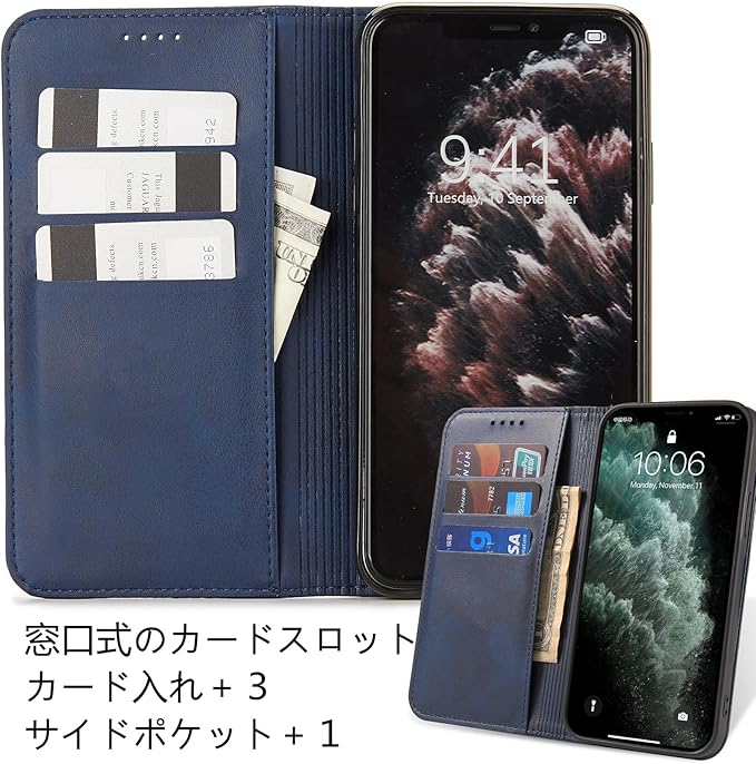 【素材】:鮮やかな色合いを避けて落ち着いたPUレザーを採用し、汚れにくくて触感が優しい素材です。インナーケースは柔軟なTPUホルダーです、装着が簡単で本体を傷つける心配はありません。衝撃吸収機能も良くて、しっかりと端末を守り抜きます。