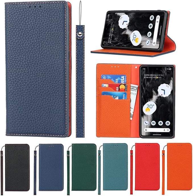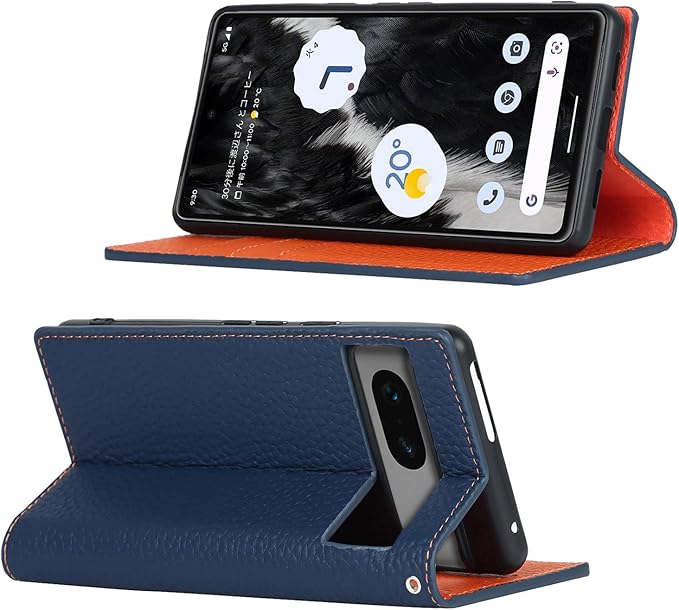 Eastwave for Google Pixel 7A ケース 本革 牛革 for google pixel7 A ケース for pixel7A 手帳型 カバー Case カバー 手帳 本革 柔らかい 本皮 スプラットホール付き スプラット同梱 内蔵マグネット-ネイビー | KAZESHOP