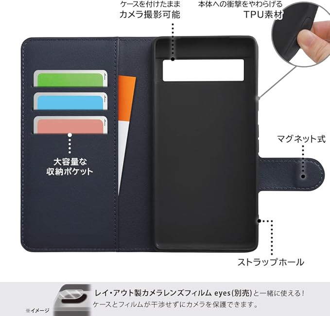 マグネット式フリップが付いているのでケースの開閉が簡単に行えます