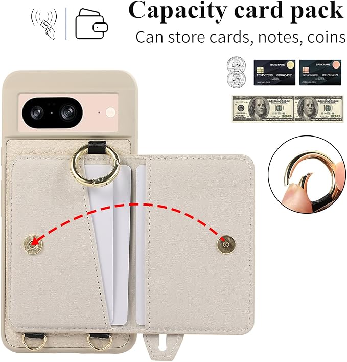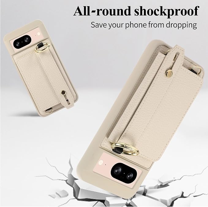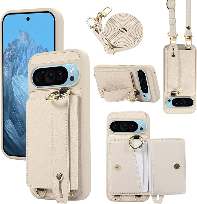 UnnFiko For Google Pixel 9 Pro ケース 財布型スマホケース 手帳型 便利性 ウォレットケース フィンガーリング カード収納 携帯ストラップ付き グーグルピクセル9 Pro バンパー スタンド機能 ストラップ付き google pixel 9 Pro カバー 本革 レザー カード入れ 携帯保護カバー (Google Pixel 9 Pro,ホワイト) | KAZESHOP