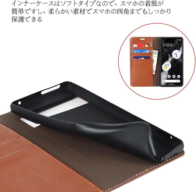 Google 適用 pixel 7A ケース 手帳型 【 マグネット無し 】 耐衝撃 カードケース pixel7A ケース 手帳型 au SIMフリー softbank ソフトバンク docomo ドコモ 全対応 手帳ケース ピクセル 7A カバー グーグル ピクセル7A カバー pixel7A スマホケース 手帳型 カバー pixel7Aケース 財布型 適用 case 【iCoverCase】 マグネットなし スタンド機能 光沢加工 牛革 レザー 財布型 カード入れ ライトブラウン | KAZESHOP