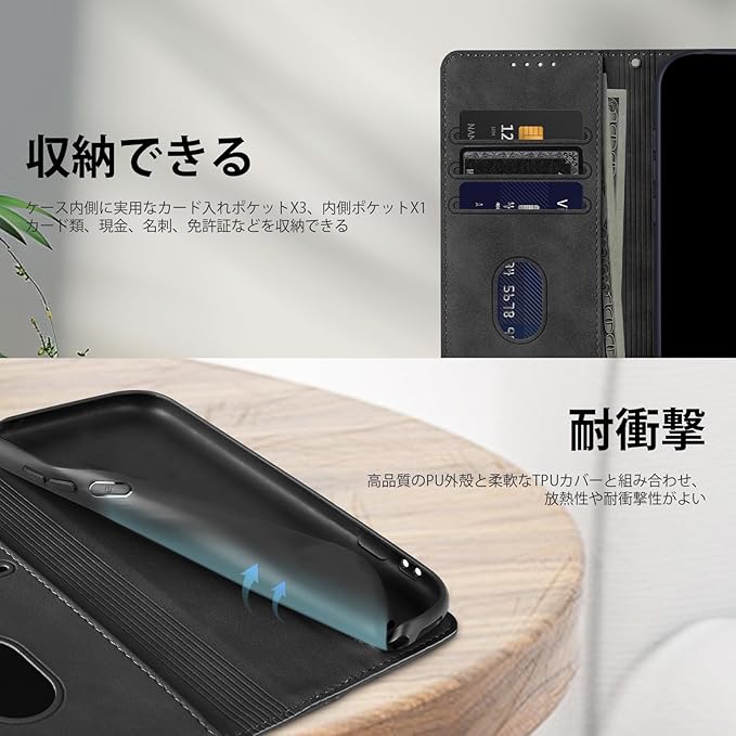適用 Google Pixel 7A ケース 軽量 薄い PU レザー マグネット カード収納 耐衝撃 スタンド 手作り 持ちやすい 滑り止め すり傷防止マグネット 横置きスタンド機能 財布型 落ち着いた色 お洒落 カバー 落下防止 手触り良い-くろい | KAZESHOP