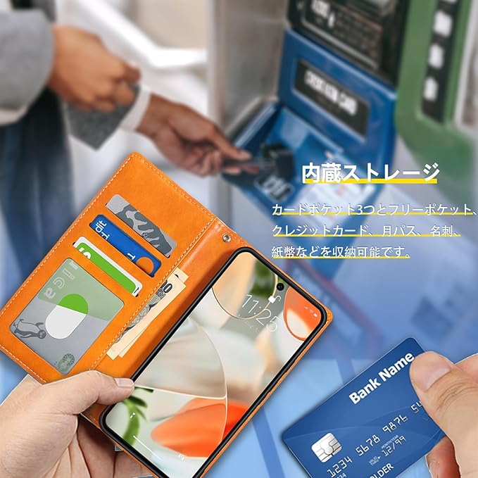 【おサイフ機能付き収納ケース】レザーケースにはカードスロットがあり、さまざまなクレジットカードやコインなど、日常的に使用するさまざまなカードを収納できます。