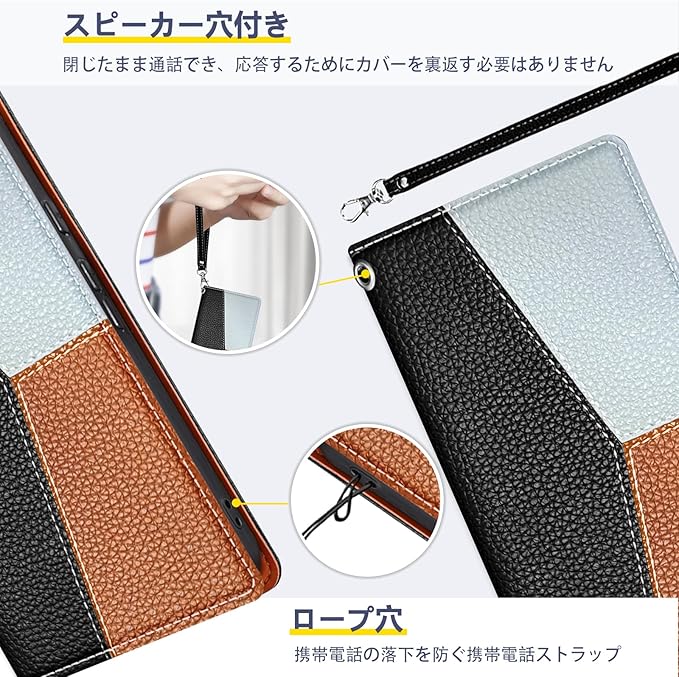 【上質な素材】表面の革は3色の革を貼り合わせて作られており、とても上品です。高品質のPUレザーと柔軟なTPU外装ケースの組み合わせにより、優れた耐衝撃性と耐擦傷性を備え、完全な保護を与えると同時に簡単に装着できます。