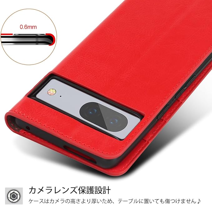 Google 適用 pixel 7A ケース 手帳型 【 マグネット無し 】 耐衝撃 カードケース pixel7A ケース 手帳型 au SIMフリー softbank ソフトバンク docomo ドコモ 全対応 手帳ケース ピクセル 7A カバー グーグル ピクセル7A カバー pixel7A スマホケース 手帳型 カバー pixel7Aケース 財布型 適用 case 【iCoverCase】 マグネットなし スタンド機能 光沢加工 牛革 レザー 財布型 カード入れ レッド | KAZESHOP