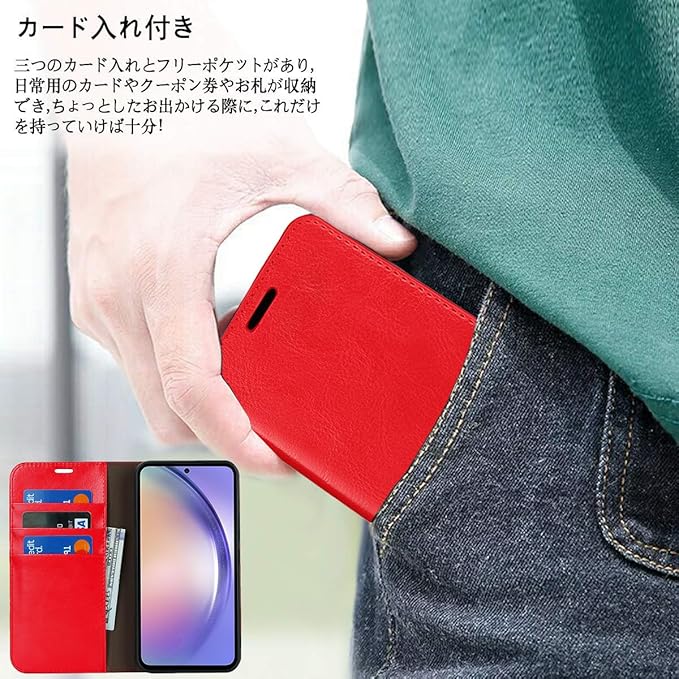 【機能性①】:シンプルでシックなデザインで、場所問わず長くご愛用いただける手帳型です。丈夫で、汚れ防止と摩擦耐性を持つスマホケースです。